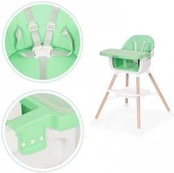 Praktyczne dziecięce krzesełko do karmienia 2w1 marki ECOTOYS łączy wysokie krzesełko i samodzielną nakładkę na zwykłe krzesło. Oferuje stabilną konstrukcję z metalowymi nogami, łatwy w czyszczeniu podwójny blat nadający się do zmywarki, 5‑punktowe pasy bezpieczeństwa, antypoślizgowe końcówki oraz podnóżek. Idealne dla dzieci od 6 do 36 miesięcy o udźwigu 20 kg.