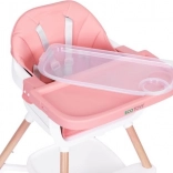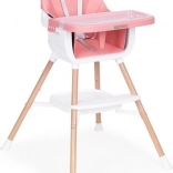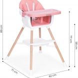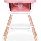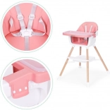 Praktyczne dziecięce krzesełko do karmienia 2 w 1 marki ECOTOYS dla dzieci od 6 do 36 miesięcy, łączące wysokie krzesełko i samodzielną nakładkę na zwykłe krzesło. Oferuje stabilną, metalową konstrukcję, tapicerkę z trwałej i łatwej w czyszczeniu eko-skóry, dwuwarstwową, zdejmowaną tackę do zmywarki, 5‑punktowe pasy bezpieczeństwa, nakładki antypoślizgowe, zabezpieczenie przeciw zsuwaniu oraz praktyczną półkę pod siedziskiem. Maksymalne obciążenie 20 kg.