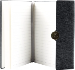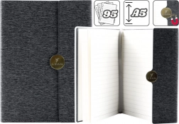 Elegancki czarny notatnik w formacie A5 jest idealny do organizacji myśli i planowania codziennych zadań. Solidne magnetyczne zapięcie i tkana zakładka zapewniają wygodne i bezpieczne użytkowanie.