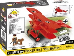Przeżyj historię lotnictwa z autentycznym modelem Fokker DR.1 Czerwony Baron w skali 1:32 od COBI. Zestaw zawiera 221 wysokiej jakości elementów, szczegółowe nadruki zamiast naklejek, ruchome elementy (śmigło, koła, lotki) oraz dodatkowo figurkę Manfreda von Richthofena i jego psa Moritza. Idealny dla kolekcjonerów, miłośników historii oraz do kreatywnej zabawy.