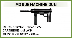 Amerykański czołgista z pistoletem maszynowym M3 oraz piechur z M1 Garand uzupełnieni o ogrodzenie i żywopłot tworzą spójną scenę.