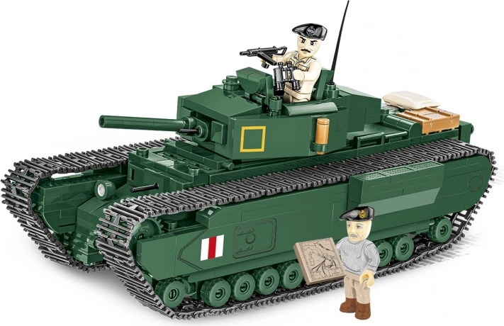 Klocki czołgu MARK IV CHURCHILL 1:35 od COBI. 668 elementów, funkcjonalne gąsienice, obrotowa wieża, 2 figurki i wysokiej jakości nadruki. Świetne dla miłośników historii.