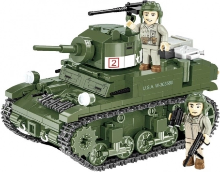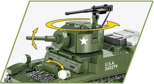 Model składa się z 511 solidnych elementów z wysokiej jakości nadrukami, które nie blakną. W komplecie znajdują się dwie figurki amerykańskich czołgistów ze słuchawkowymi hełmami i wyposażeniem. Zestaw jest w pełni kompatybilny z innymi markami klocków, spełnia normy bezpieczeństwa i ucieszy kolekcjonerów oraz młodych pasjonatów historii.
