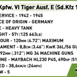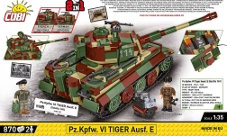 Ten precyzyjnie wykonany model bazuje na słynnym czołgu Pz.Kpfw. VI Tiger Ausf. E z numerem taktycznym 114, znanym z Musée des Blindés w Saumur. Dzięki bogatym detalom, wiernemu kamuflażowi i funkcjonalnym elementom czerpiesz frajdę zarówno z budowy, jak i z zabawy. W zestawie znajduje się wyjmowany, klockowy silnik Maybach HL 210, obrotowa wieża i armata z podniesieniem, otwierane włazy oraz realistyczna trakcja gąsienic.