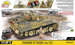 Zbuduj legendarny czołg Panzer VI Tiger I nr 131 w bardzo popularnej skali 1:35. Ten szczegółowy model od COBI zawiera 898 elementów, ma obracaną wieżę, regulowaną lufę i funkcyjne gąsienice. Nie brakuje minimodelu silnika Maybach, otwieranych włazów, figurki dowódcy w tropikalnym mundurze oraz kolekcjonerskiej tabliczki z logo The Tank Museum.