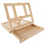 Drewniany kuferek jest wyposażony w szufladkę i sztalugę, co gwarantuje łatwe przenoszenie oraz organizację przyborów artystycznych.
