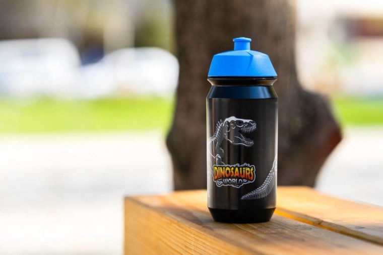 Elegancka butelka na napoje z motywem dinozaurów, idealna dla współczesnych, żądnych przygód dzieci. Praktyczna i bezpieczna do codziennego użytkowania.
