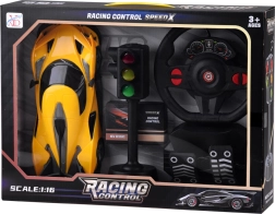 Ten dopracowany model auta wyścigowego w skali 1:16 zapewnia dzieciom autentyczne wrażenia z prowadzenia. Sterowanie odbywa się za pomocą kierownicy z płynnym skrętem oraz oddzielnego zestawu pedałów do jazdy do przodu i do tyłu. W komplecie jest również sygnalizacja świetlna, która urozmaica zabawę o scenariusze drogowe i uczy podstaw przepisów ruchu.