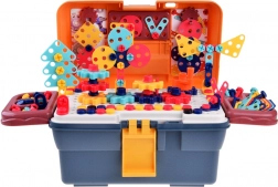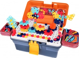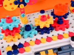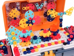 Kolorowy przenośny warsztat dla małych majsterkowiczów oferuje 298 elementów do wkręcania, budowania i tworzenia. Walizka z blatem roboczym z otworami i organizerami zawiera dziecięcą wiertarko-wkrętarkę, śruby, nakrętki, koła zębate oraz elementy konstrukcyjne do tworzenia modeli 2D i 3D. Rozwija małą motorykę, myślenie logiczne i kreatywność dzieci od 3 lat.