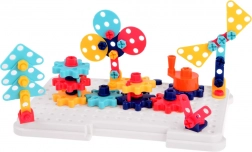 Łączone kółka, śruby i płyty z otworami pozwalają tworzyć ruchome modele, które stymulują logiczne myślenie i kreatywność.