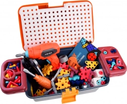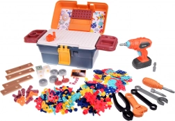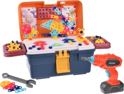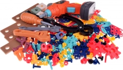 Dziecięca akumulatorowa wiertarko-wkrętarka, śrubokręt, klucze i szczypce wspierają realistyczną zabawę w rzemieślnika, a kolorowe elementy prowadzą dzieci do odkrywania kształtów, wzorów i zasad prostej mechaniki. W zestawie znajduje się także broszura inspiracyjna z pomysłami na budowle.