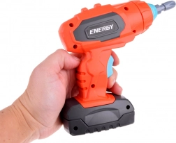 Lekki akumulatorowy wkrętak z nasadkami naśladuje prawdziwe narzędzia i motywuje dzieci do samodzielnego wkręcania.