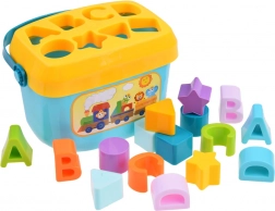 Ten sprytny zestaw łączy zabawę i naukę w jednym. Dzieci wkładają kształty do odpowiednich otworów w pokrywce, dzięki czemu ćwiczą logiczne myślenie, segregowanie i spostrzegawczość wzrokową. Dzięki kolorowym elementom i literkom naturalnie przyswajają podstawy alfabetu oraz rozróżniania kształtów.