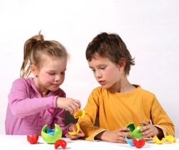 Średnica około 8 cm zapewnia wygodne trzymanie w dłoni. Żywe kolory zachęcają do zabawy i ułatwiają orientację podczas układania.