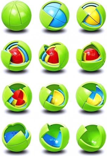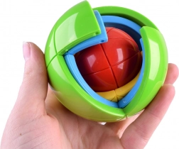 Ta sprytnie zaprojektowana kula-łamigłówka składa się z wielokolorowych warstw i łącznie 21 elementów, które można łatwo rozłożyć i ponownie złożyć do kompaktowego kształtu. Dzięki przyjemnym kolorom i gładkiej powierzchni dobrze leży w dłoni i motywuje do wielokrotnego rozwiązywania.