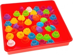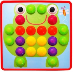 Kreatywna mozaika z kołeczkami to świetny wybór dla ciekawych świata dzieci. Zestaw zawiera kolorowe kołeczki, plastikową płytkę oraz obrazkowe szablony, do których dzieci wkładają kołeczki według kolorów lub własnej fantazji. Zabawa wspiera kreatywne myślenie, rozpoznawanie kolorów i małą motorykę.