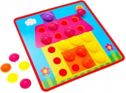 Zestaw zawiera obrazki z otworami, w które wkłada się kołeczki zgodnie z kolorami. Idealne do nauki kolorów i cierpliwości.