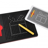 Ta kompaktowa magnetyczna tablica jest idealna dla dzieci i dorosłych jako pomoc zarówno relaksacyjna, jak i edukacyjna. Magnetyczna końcówka przyciąga kuleczki do otworów i tworzy wyraźne punkty, z których łatwo ułożysz obrazki, cyfry czy litery. Gotowy motyw zetrzesz, po prostu wciskając kuleczki z powrotem – tablica jest nieskończenie wielokrotnego użytku.