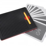 Magnetyczny rysik unosi kuleczki na powierzchnię i tworzy wyraźne punkty. Obrazy zmażesz, wciskając kuleczki z powrotem – bez papieru, farb ani baterii.