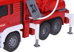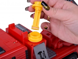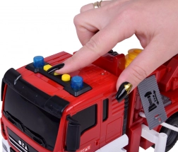 Ten szczegółowo wykonany wóz strażacki zachwyci małych bohaterów realistycznymi funkcjami – od prawdziwej pompy wodnej z wężem, przez świecące koguty i syrenę, po ręcznie wysuwaną i regulowaną drabinę. Dzięki napędowi typu friction auto jeździ bez baterii, a światła i dźwięki zasilane są dołączonymi bateriami.