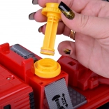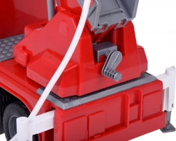 Solidna plastikowa konstrukcja w żywych kolorach, gumowe opony dla lepszej przyczepności oraz boczne schowki i wysuwane podpory dodają zabawie autentyczności. Obrotowy wysięgnik 360° i praktyczna przegroda na wąż wspierają rozwój małej motoryki, wyobraźni i pracy zespołowej.