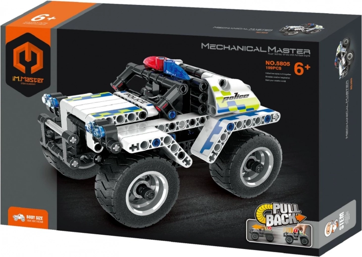 Zestaw konstrukcyjny iM.Master zapewnia dzieciom godziny twórczej zabawy. Z 199 wytrzymałych elementów łatwo zbudujesz szczegółowy policyjny samochód, który po naciągnięciu sprężynowego mechanizmu rusza do przodu. Dzieci ćwiczą wyobraźnię, logiczne myślenie i cierpliwość, a budować mogą nie tylko według instrukcji, lecz także tworzyć własne, oryginalne modele.