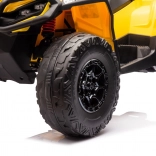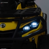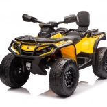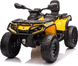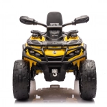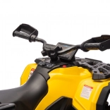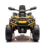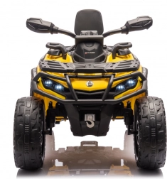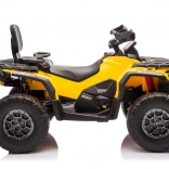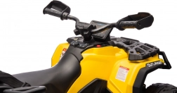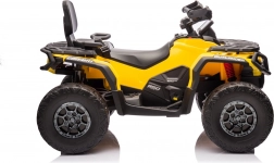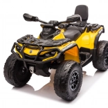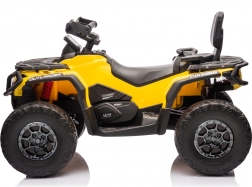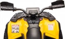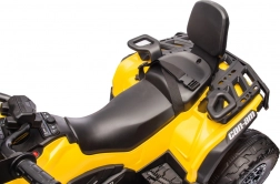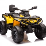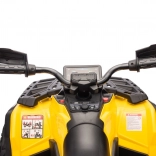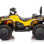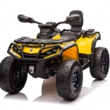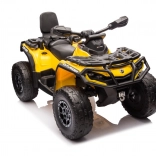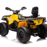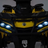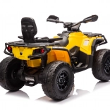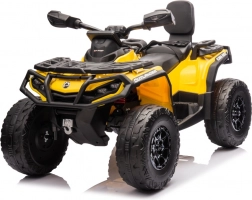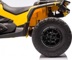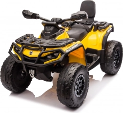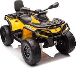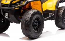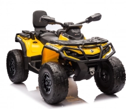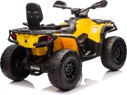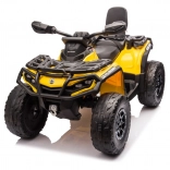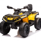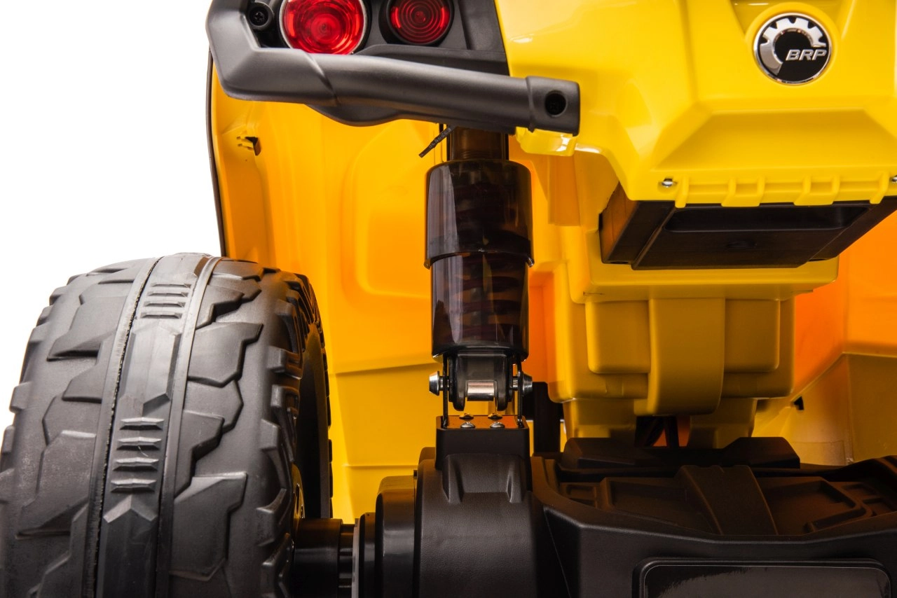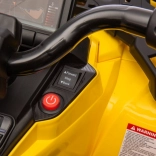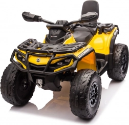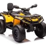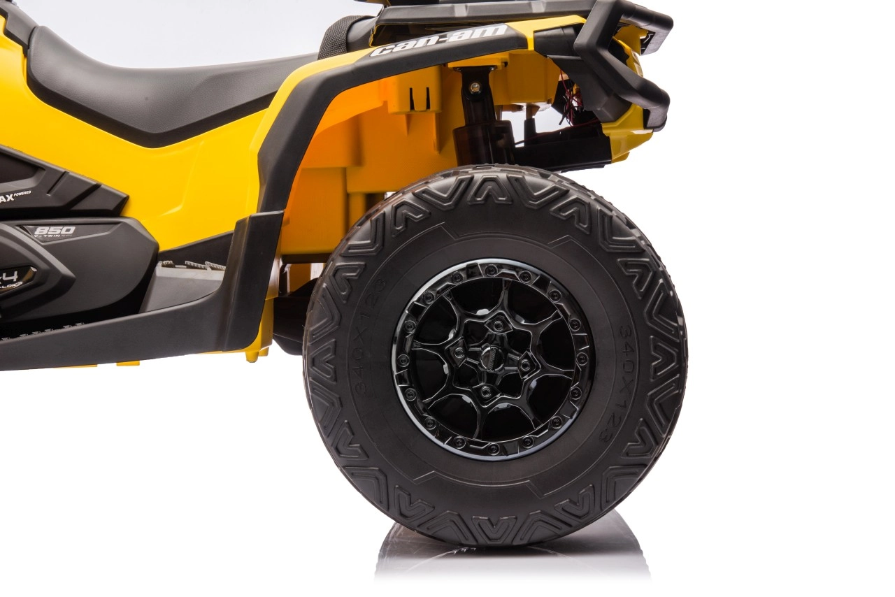Quad Can-Am Outlander ATV w intensywnie żółtym kolorze został zaprojektowany tak, aby realistycznie naśladować prawdziwe ATV. Wyposażony w duże koła EVA oraz wytrzymałą plastikową konstrukcję, zapewnia trwałość podczas zabawy na zewnątrz. Zawiera także napęd z możliwością przełączania na 2 lub 4 koła, który można łatwo zmieniać za pomocą przycisku sterującego.