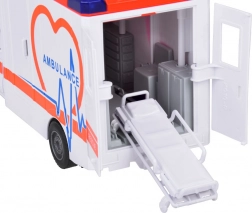 Karetka ma otwierane boczne i tylne drzwi, a zdejmowana część dachowa umożliwia łatwy dostęp do szczegółowego wyposażenia wnętrza, jak kierownica, tablica rozdzielcza i siedzenia. W zestawie znajdziesz również wyjmowane nosze, które wprowadzają do zabawy dodatkowe możliwości.