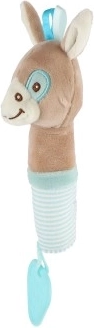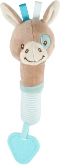 Urocza pluszowa grzechotka z piszczałką i gryzakiem w kształcie osiołka ucieszy maluszki od urodzenia. Miękki materiał jest przyjemny w dotyku, teksturyzowany gryzak przynosi ulgę przy ząbkowaniu, a wbudowana piszczałka wspiera rozwój zmysłów i przyciąga uwagę.