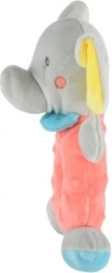 Ta mięciutka grzechotka w kształcie słonika zachwyci każde niemowlę subtelnymi kolorami i przyjemnym dźwiękiem. Lekka konstrukcja oraz okrągłe ciało z otworem umożliwiają łatwe trzymanie nawet najmniejszym rączkom. Grzechotka pomaga rozwijać małą motorykę, percepcję słuchową i koordynację ręka–oko.