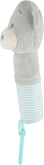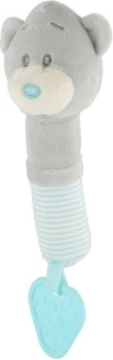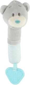 Ta pluszowa grzechotka z gryzakiem łączy kilka funkcji w jednej zabawce dla niemowląt. Dzięki miękkiej tekstylnej powierzchni wygodnie leży w małych rączkach, a zintegrowany piszczek delikatnym dźwiękiem rozwija słuch i zdolność koncentracji. Silikonowy gryzak pomaga ukoić wrażliwe dziąsła podczas ząbkowania.