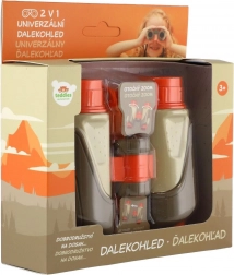 Lornetkę można łatwo rozdzielić na dwie części – zabawna funkcja 2w1 do wspólnego odkrywania z rodzeństwem lub kolegą. Regulowana szerokość i wygodne uchwyty zapewniają stabilne trzymanie i przyjemne użytkowanie. W zestawie znajduje się praktyczny sznurek/pasek, dzięki któremu dzieci mają lornetkę zawsze pod ręką i minimalizują ryzyko upuszczenia.
