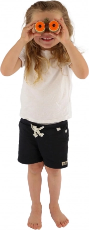 Ta uniwersalna dziecięca lornetka to świetny towarzysz dla małych odkrywców. Dzięki lekkiej plastikowej konstrukcji wygodnie leży w dziecięcych dłoniach, a jaskrawe pomarańczowe elementy zwiększają widoczność i bezpieczeństwo podczas zabaw na zewnątrz. Obrotowy zoom i płynne doostrzanie pomagają dzieciom lepiej obserwować odległe obiekty, ptaki czy zwierzęta, rozwijając ciekawość i relację z naturą.