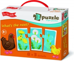 Odkryj magię Far Far Land puzzle trio, które przynosi dzieciom nie tylko radość z zabawy, ale także rozwój myślenia logicznego i umiejętności rozpoznawania. To opakowanie zawiera łącznie 8 obrazków, z których każdy składa się z trzech elementów: