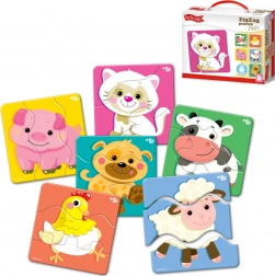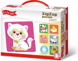 Puzzle ZigZag Pupile od Far Far Land to zabawka przeznaczona dla dzieci od 3 lat, oferująca zabawę z domowymi zwierzętami w 6 różnych obrazkach. Kolorowe wzory i specjalne zygzakowate cięcia wzbogacają wrażenia z układania.