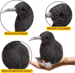 Ta pluszowa maskotka kiwi w eleganckim czarnym kolorze zachwyca realistycznym wykonaniem i miękką powierzchnią, która wręcz zachęca do przytulania. Dzięki starannie dopracowanym detalom – długiemu dziobowi, drobnym łapkom i puszystej fakturze – wygląda bardzo wiarygodnie i stanie się ulubionym towarzyszem dla dzieci od 3 lat.