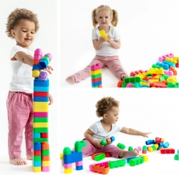 Wszystkie klocki wykonane są z miękkiego materiału, który jest bezpieczny do zabawy dla dzieci i zapewnia, że dzieci nie doznają obrażeń podczas zabawy.