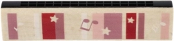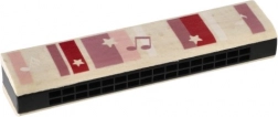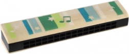 Harmonijka wykonana jest z połączenia drewna i plastiku, co zapewnia wygodny chwyt i długą żywotność. Jest odpowiednia dla początkujących – wystarczy dmuchnąć i naprzemiennie wdychać oraz wydychać powietrze, aby zagrać proste melodie.