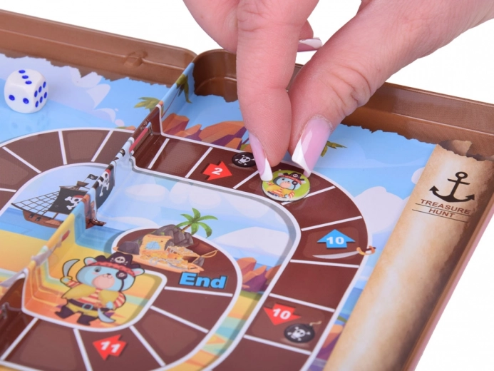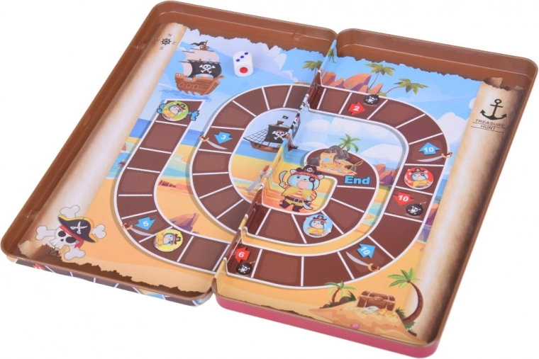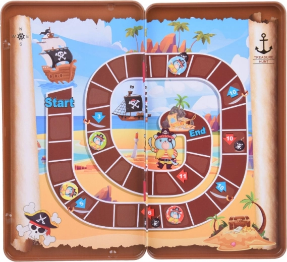 Zanurz się w fascynującym świecie piratów z naszą magnetyczną grą planszową Poszukiwanie skarbu. Ta gra jest inspirowana ulubionymi opowieściami o piratach i oferuje godziny zabawy dla dzieci i dorosłych. Solidne metalowe etui służy nie tylko jako plansza do gry, ale także zapewnia trwałość i długą żywotność gry.