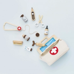 Unikalna torba weterynaryjna z akcesoriami jest idealna dla ciekawskich małych weterynarzy. Zestaw zawiera 10 narzędzi wykonanych z drewna posiadającego certyfikat FSC, co zapewnia ekologiczne i zrównoważone pochodzenie. Dzieci mogą zanurzyć się w świat opieki nad zwierzętami dzięki rewolucyjnym narzędziom, takim jak stetoskop, nożyczki i strzykawka. Torba została zaprojektowana, aby wspierać kreatywność i rozwijać wyobraźnię.