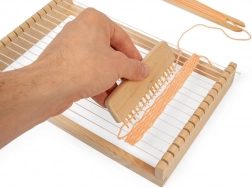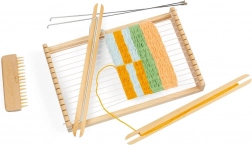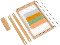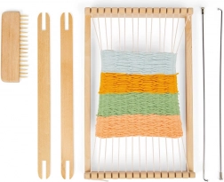 Zawiera wszystkie niezbędne narzędzia i przędze do tworzenia oryginalnych tekstyliów, w tym drewniany grzebień, czółenko i kolorowe nici.