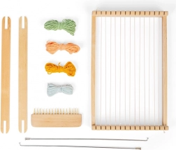 To drewniane krosno jest idealne dla dzieci, które chcą spróbować ręcznego tkania tekstyliów. Wykonane z najwyższej jakości materiałów z certyfikatem FSC®, gwarantującym zrównoważone praktyki leśne. Narzędzie pomagające rozwijać nie tylko zręczność, ale także koncentrację i cierpliwość.