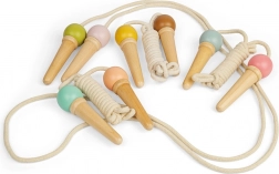 Ta wysokiej jakości drewniana skakanka to idealne narzędzie do motywowania dzieci do zabaw na świeżym powietrzu i ćwiczeń. Skakanka wykonana jest z wysokiej jakości, przyjaznego środowisku drewna z certyfikatem FSC® i pomalowana nietoksycznymi farbami. Jest w pełni bezpieczna i spełnia wszystkie aktualne europejskie normy bezpieczeństwa.