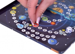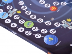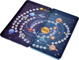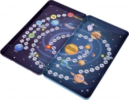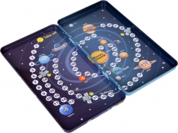 - Magnetyczna plansza: Wymiary 31 x 15 cm, zawiera kosmiczne układy i planety.