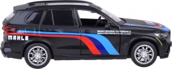 Model auta BMW X5 M jest precyzyjnie wykonany z naciskiem na detale, co doceni każdy mały i duży miłośnik motoryzacji. Dzięki metalowemu nadwoziu i gumowym oponom podłoga pozostaje nienaruszona podczas zabawy. Podwozie wykonano z plastiku, co zwiększa lekkość modelu.