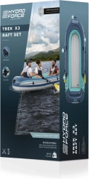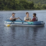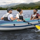 W zestawie znajduje się wszystko, czego potrzebujesz do wodnych przygód: ponton, para wioseł, pompka oraz zestaw naprawczy. Całość jest łatwa w montażu i transporcie.