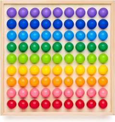- Wysokiej jakości materiał: solidna drewniana plansza i trwałe kulki w kolorach tęczy.
