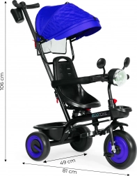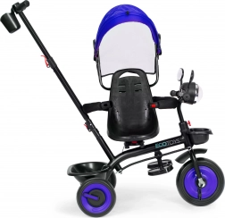 Uniwersalny dziecięcy trójkołowiec 3w1 ECOTOYS rośnie razem z dzieckiem od 6 miesięcy do 6 lat. Oferuje obrotowe siedzisko 360°, solidną stalową konstrukcję, bezobsługowe koła EVA oraz odpinany daszek. Dla wygody i bezpieczeństwa nie brakuje prowadnika dla rodzica, osłon zabezpieczających, składanych podnóżków, dwóch koszyków oraz interaktywnego światła z melodiami.