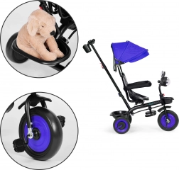 Trójkołowiec ECOTOYS łączy komfort wózka z radością z jazdy. Dzięki obrotowemu siedzisku 360° możesz wozić dziecko przodem do rodzica lub w kierunku jazdy. Wytrzymała stalowa rama, tapicerka z odpornej tkaniny Oxford oraz koła EVA (10"/8") zapewniają stabilną i cichą jazdę w domu i na zewnątrz.