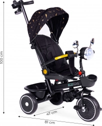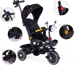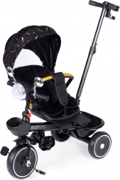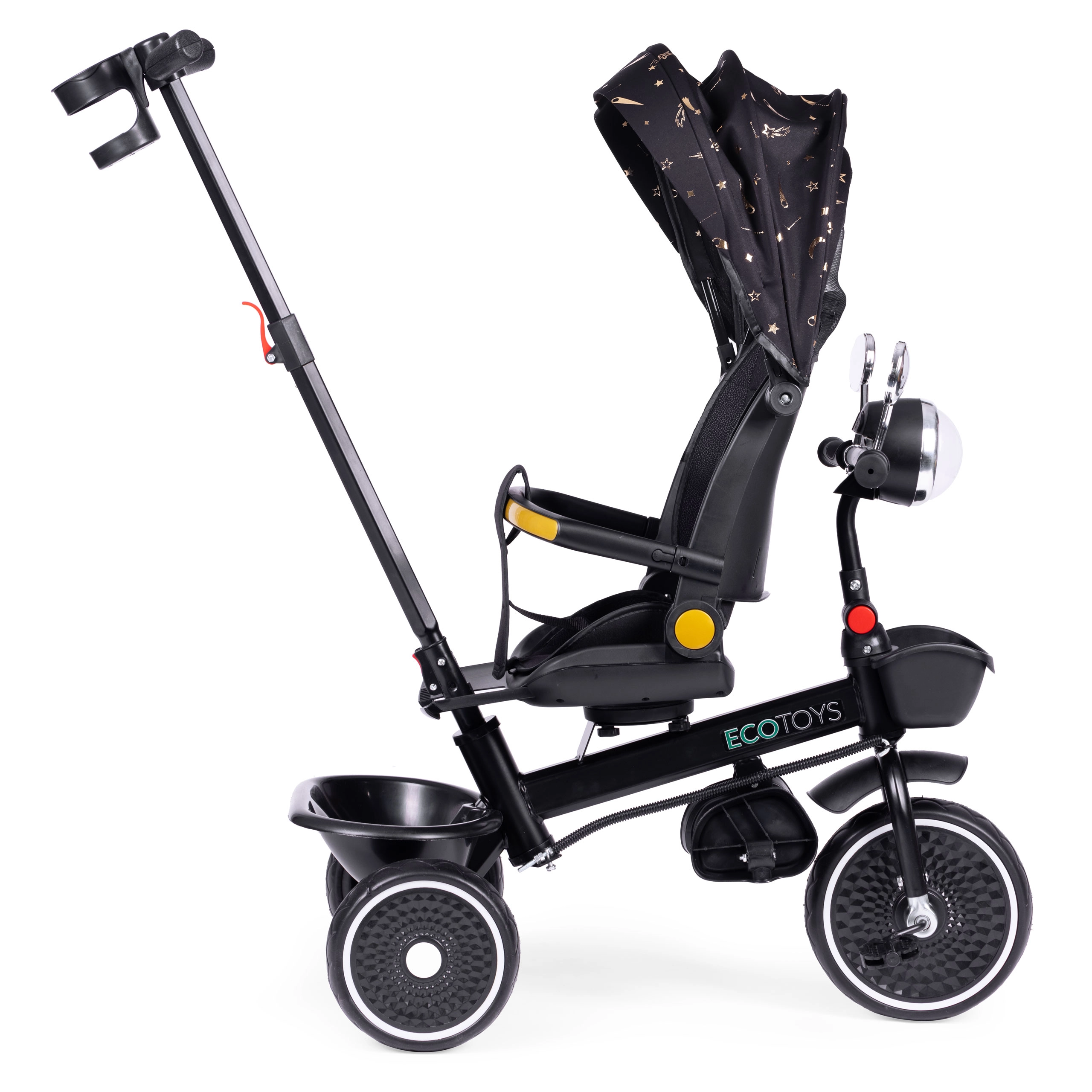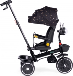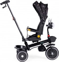 Dziecięcy trójkołowiec z siedziskiem obracanym o 360°, prowadzącą rączką i budką, czarny, ECOTOYS